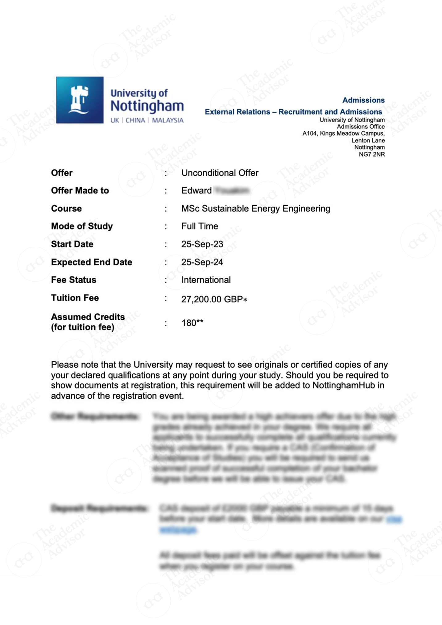 Магистратура в University of Nottingham - Academic Advisor