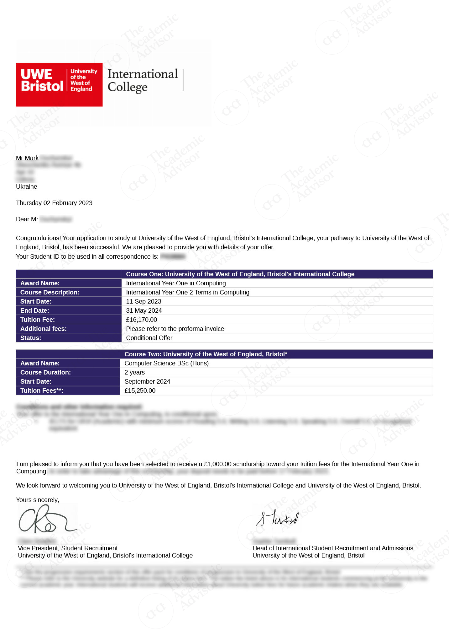 Для вступу на ступінь бакалавра до Університету Західної Англії (UWE) потрібно мати 12 років попередньої освіти або ж вступати через програму підготовки Foundation, International Year One одразу після 11ти класів (саме так вступають більшість наших студентів). Альтернативою також може стати вступ через програму A-level або IB. Для прямого вступу на магістерські програми Університету Західної Англії (UWE) необхідно буде мати диплом бакалавра, або вступати через програму підготовки Pre-Master.